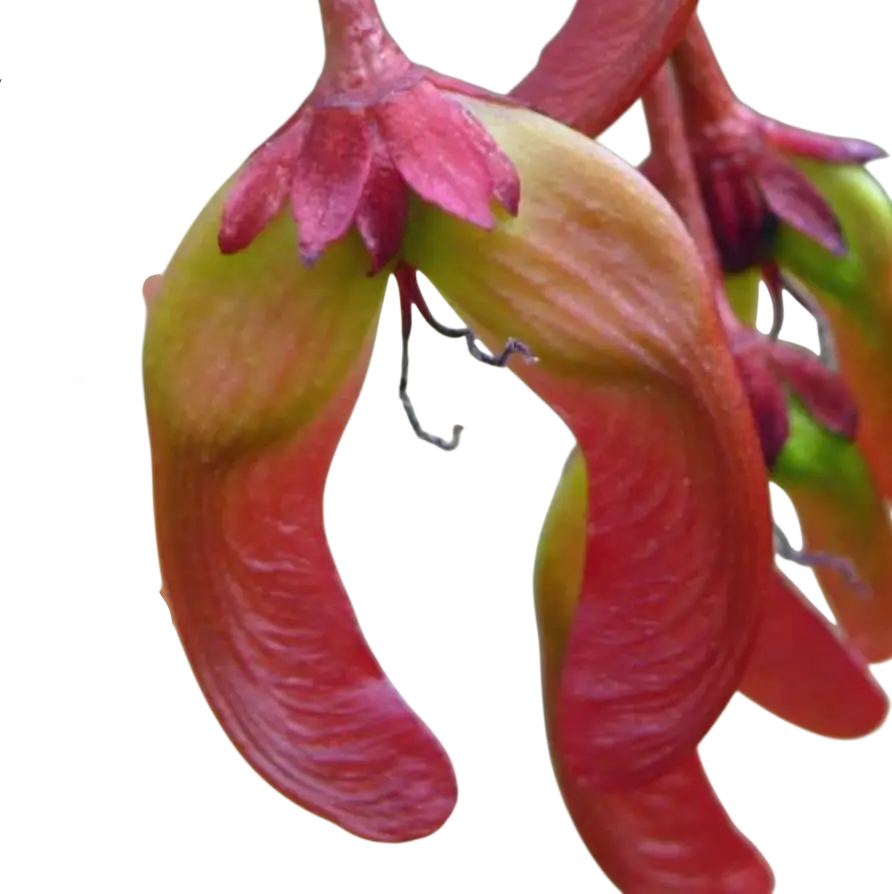 Fruta: Rojo brillante, fruta de 2 alas (sámara), 1″ o menos de largo, en racimos; semi-vistoso a vistoso. De invierno a primavera; en el sur de Florida, las frutas pueden madurar en enero.
