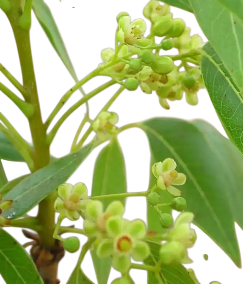 Descripción: Árbol de tamaño mediano a grande con un tronco erecto y una copa ancha, densa y redondeada. Corteza de color marrón rojizo, gruesa, rugosa por escamas gruesas. Hojas tropicales semi-caducifolias, compuestas, de 4-8 pulgadas de largo, de color verde oscuro en la parte superior.
