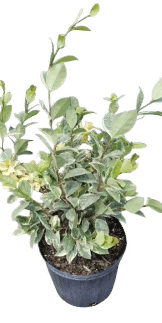 Descripción: El jazmín confederado variegado es una enredadera de rápido crecimiento con hojas variegadas blancas y verdes muy atractivas. ¡Produce racimos de pequeñas flores blancas durante todo el año que tienen una fragancia maravillosa! ¡Perfecto para un enrejado o una valla!