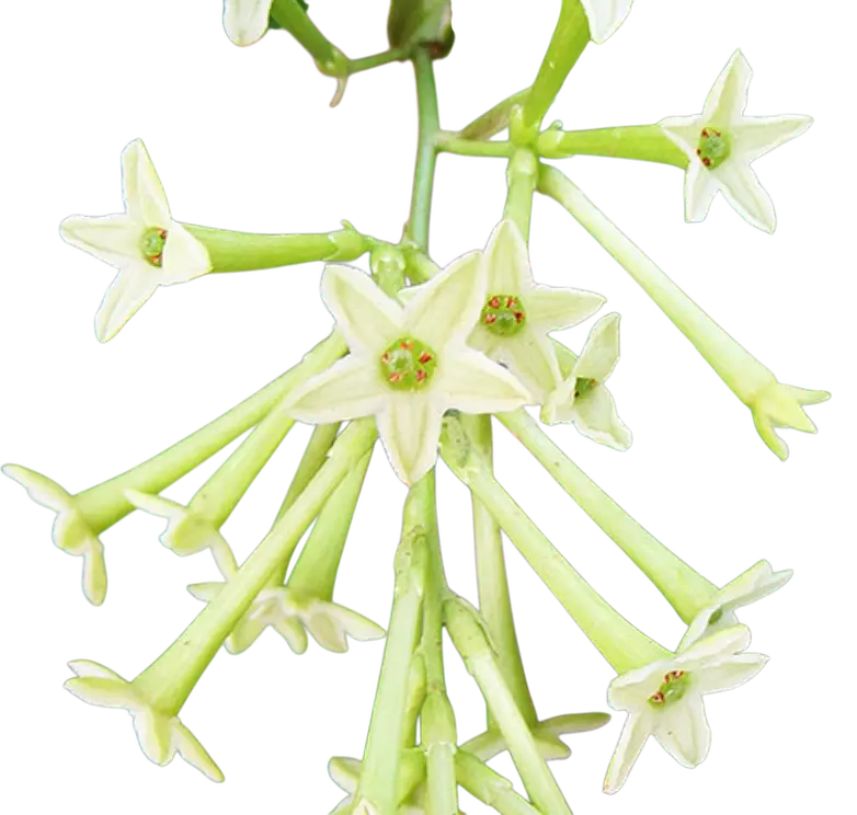 Descripción: Uno de los jazmines más fragantes que existen. El jazmín de noche crece hasta convertirse en un arbusto denso que puede llegar a ser bastante grande. Florece de forma intermitente durante todo el año. La fragancia que desprenden las flores cuando se abren por la noche impregnará todo su jardín.