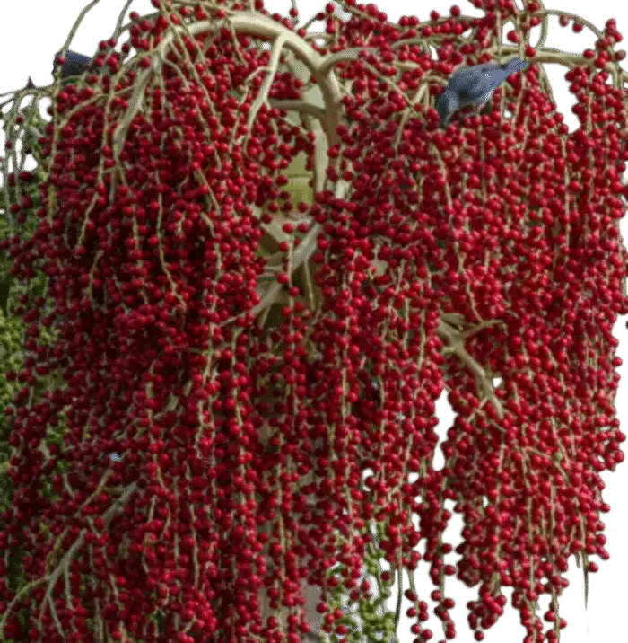 Fruto: rojo brillante, de forma ovalada que madura en racimos