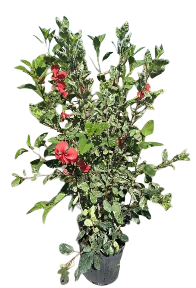 Description: A semi-dwarf to medium evergreen shrub featuring striking, variegated leaves mottled with green, creamy white, and occasional splashes of pink.